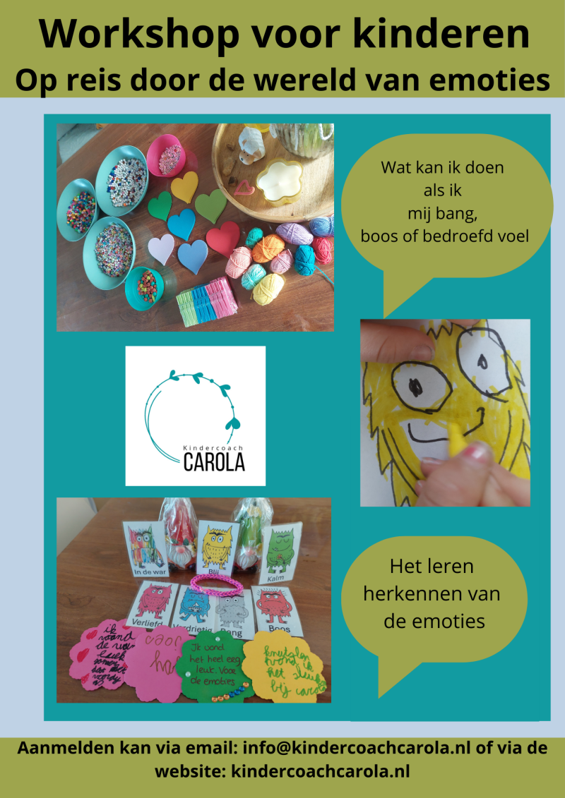 Door cursussen te volgen en ervaring in mijn werk heb ik er voor gekozen om ook workshops te gaan geven. In een groep een onderwerp bespreken geeft soms meer inzichten doordat je samen bent met mensen met dezelfde hulpvraag. Op deze manier krijg je via de workshop meer kennis en handvatten over het onderwerp en kun je ook verhalen van anderen horen.